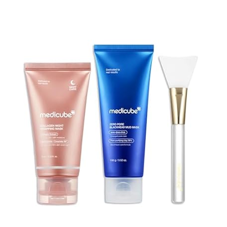 • medicube Korean Viral Glass Skin Mask Duo: Collagen Overnight Wrapping Peel Off Facial Mask Pack and Zero Pore Blackhead Mud Facial Mask and Jelly Brush | Holiday Stocking Stuffers