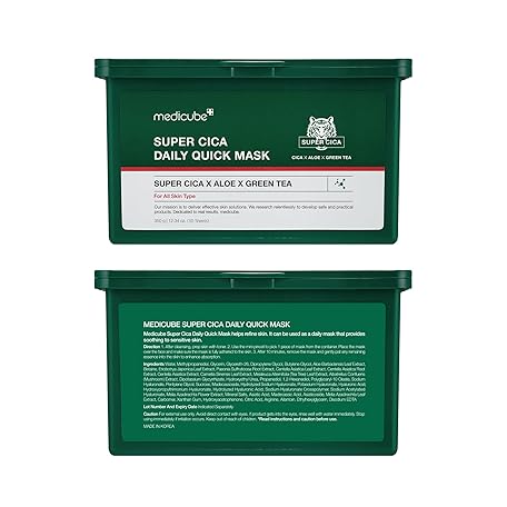 Thông tin sản phẩm medicube Super Cica Daily Quick Facial Masks (30 Sheets) - 60-Second Soothing & Hydrating Facial Mask with 88% Cica, Instant Cooling & Moisturization - 100% Vegan Certified, Korean Skincare