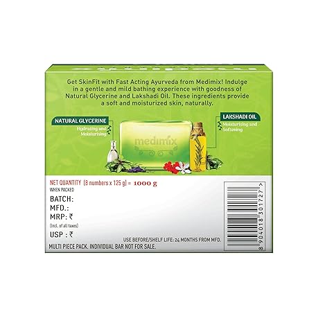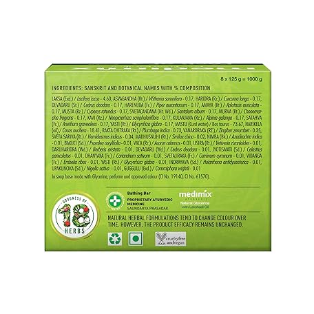 Medimix Ayurvedic Natural Glycerine Bathing Bar, 125 g (Pack of 8)