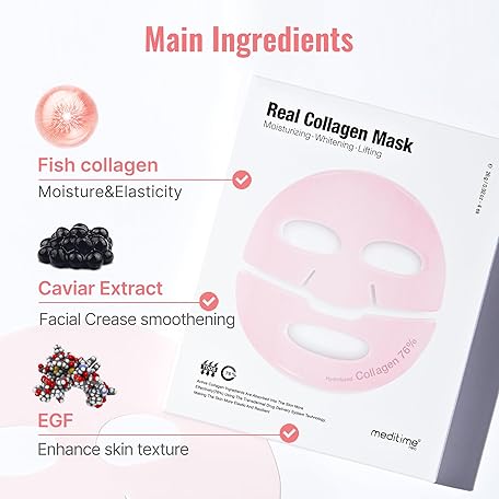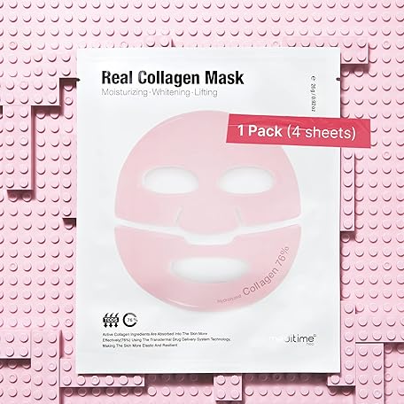 Thông tin sản phẩm Meditime Collagen Mask, Korean Collagen Firming Mask | Collagen Face Sheet Mask for Reducing Fine Lines & Brightening, 4 sheets