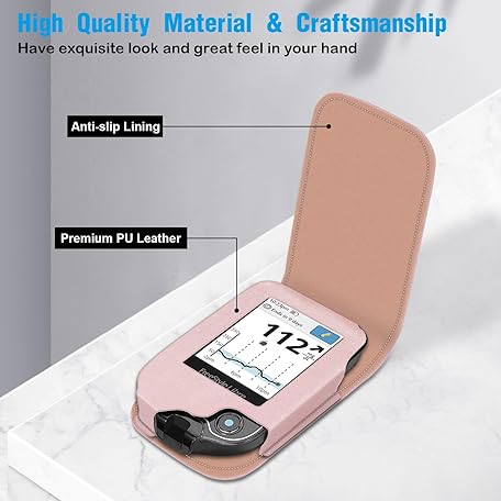 MEDMAX PU Protective Case with Detachable Hanging Lanyard for Freestyle Libre 3 2 / Libre Reader, Lightweight Shockproof Diabetic Storage Neck Sling Carrying Case with Carabiner Clip (Rose Gold)
