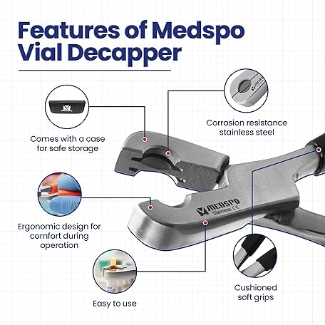 MEDSPO Dual Action Vial Opener and Vial Decapper | Durable Ergonomic Vial Cap Remover | Easy to Use Vial Opener Tool | For Medical Applications and Opening Pharmacy Medicine Bottles (11mm x 20mm)
