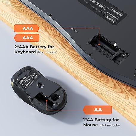 MEETION Ergonomic Keyboard and Mouse Wireless Combo, Wave Keys Natural Typing, 2.4G USB Receiver Wireless Keyboard with Wrist Rest, 4 Adjustable DPI Optical Mouse, Computer/Laptop/Windows/Mac, Black