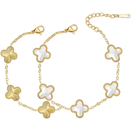 Sản phẩm MEFELAY Unique 18K Gold Four Leaf Clover Bracelet for Women White Gold Lucky Link Clover Bracelets, Trendy Bracelets Set Jewelry Gifts for Women đang được bán với giá ưu đãi là $10.8673 tại nước Mỹ.