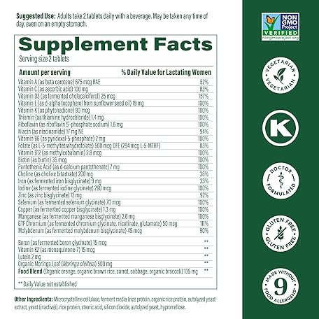 Thông tin sản phẩm MegaFood Baby & Me 2 Postnatal Vitamins for Women Breastfeeding with Folate (Folic Acid Natural Form), Choline, Iodine, Vitamin D, Moringa Leaf and More - 120 Tabs (60 Servings)