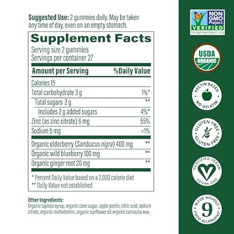 MegaFood Elderberry Immune Support Supplement - Vegan Elderberry Gummies for Adults - Made with Zinc and Real Food - Pectin-Based, Gluten-Free, USDA Organic - 54 Gummies, 27 Servings