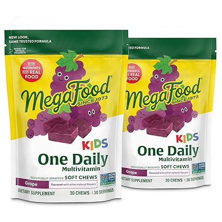 Sản phẩm MegaFood One Daily Kids Vitamins Multivitamin Soft Chews - Vitamin B, C, D & E - Age 4+, Vegetarian, Made Without 9 Food Allergens - Grape Flavor – 30 Chews (2 Pack) đang được bán với giá ưu đãi là $41.3982 tại nước Mỹ.