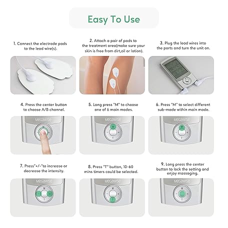 Thông tin sản phẩm MegaWise EMS TENS Unit, 24 Modes with 14 Premium Pads, Dual Channel Muscle Stimulator for Back Pain Relief Therapy, Home Use, Ideal Gift for Mum and Dad