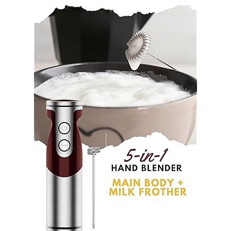 Thông tin sản phẩm MegaWise Pro Titanium Reinforced 5 in1 Immersion Hand Blender, Powerful with 80% Sharper Blades, 12 Speed Corded Blender, Including 500ml Chopper, 600ml Beaker, Whisk and Milk Frother