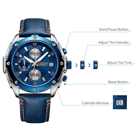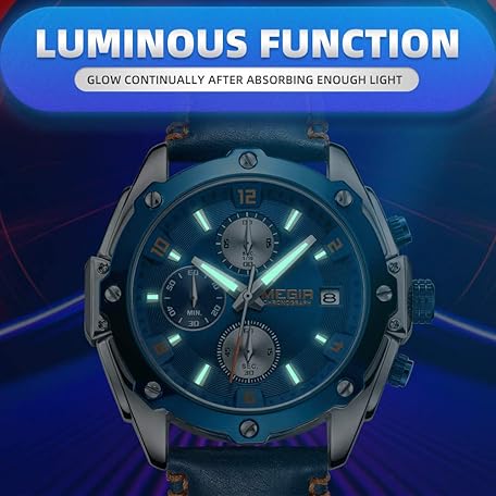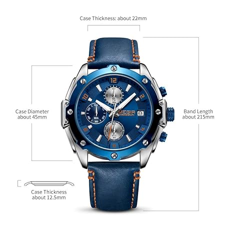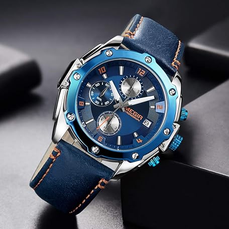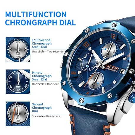 Sản phẩm MEGIR Men Business Analogue Quartz Watch with Fashion Blue Leather Strap Chronograph Luminous Auto Calendar for Sport & Work 2074 Blue đang được bán với giá ưu đãi là $39.2291 tại nước Mỹ.