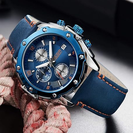 Thương hiệu MEGIR là cái tên nổi tiếng được rất nhiều khách hàng trên thế giới chọn lựa. Với kiểu dáng đẹp mắt, sang trọng, sản phẩm MEGIR Men Business Analogue Quartz Watch with Fashion Blue Leather Strap Chronograph Luminous Auto Calendar for Sport & Work 2074 Blue là sự lựa chọn hoàn hảo nếu bạn đang tìm mua một món cho riêng mình.