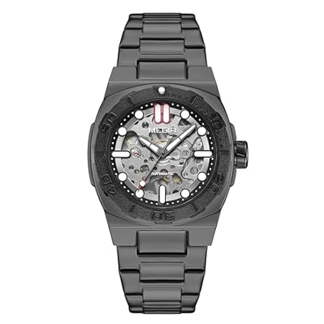 Thông tin sản phẩm MEGIR Men's Automatic Watch with Mechanical Movement & Exhibition Back, 40mm Alloy Case, Mineral Crystal, Stainless Steel Butterfly Clasp Band, Luminous Hands, 3ATM Water Resistant,Stylish Gift