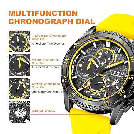 Sản phẩm MEGIR Men's Sports Analogue Chronograph Luminous Quartz Watches with Stylish Yellow Silicone Strap for Gifts (2211 Yellow) đang được bán với giá ưu đãi là $39.2291 tại nước Mỹ.