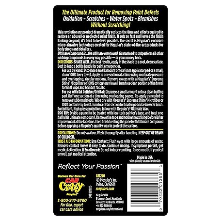 Thông tin sản phẩm Meguiar's Ultimate Compound, 20 Oz - Remove Scratches, Swirl Marks and Oxidation While You Restore Color and Clarity for a Showroom Shine - Safe and Effective on All Glossy Paints and Clear Coats
