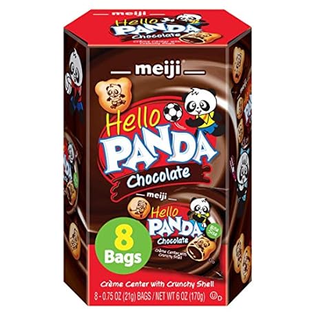 Thông tin sản phẩm Meiji Cookies, Chocolate Crème Filled - 6 oz, Pack of 8, 64 Bags Total - Bite Sized Cookies with Fun Panda Sports