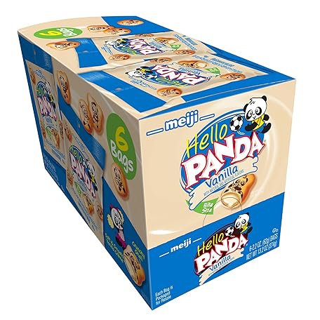 Thông tin sản phẩm Meiji Hello Panda Cookies, Vanilla Crème Filled - 2.2 oz, Pack of 6 - Bite Sized Cookies with Fun Panda Sports