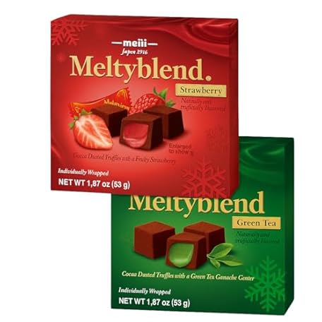Meiji Meltyblend Chocolate Truffles, Strawberry and Green Tea Flavors, 1.87 oz Each, 2-Pack