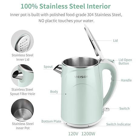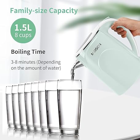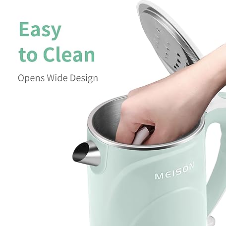 Thông tin sản phẩm MEISON Electric Kettle, 1.7 L Double Wall Food Grade Stainless Steel Interior Water Boiler, Coffee Pot & Tea Kettle, Auto Shut-Off and Boil-Dry Protection, 1200W, 2 Year Warranty(Blue)