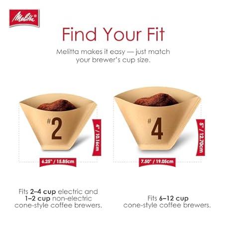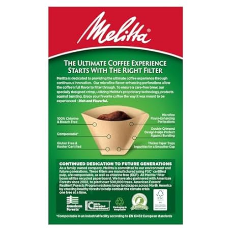 Thông tin sản phẩm Melitta #2 Cone Coffee Filters, Natural Brown, 100 Count (Pack Of 6), 600 Total Filters - Fits all 2-6 Cup Cone Coffee Makers and 1-cup Pour-Over Brewers, Compostable, Tear-Resistant, Made in USA
