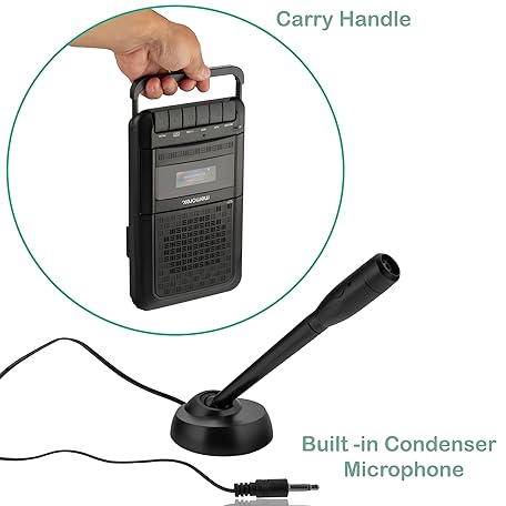 Thông tin sản phẩm Memorex MX-CR90 Retro Cassette Player/Recorder | One-Touch Recording, Fast Forward/Rewind, Microphone Jack, Headphone Jack | Portable with Carry Handle and AC Adapter | Classic Cassette Tape Recorder