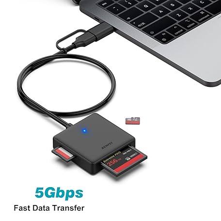 Thông tin sản phẩm Memory Card Reader, BENFEI 4in1 USB 3.0 and USB-C to SD Micro SD MS CF Card Reader Adapter, 4 Cards Simultaneously Read and Write, Compatible with iPhone 15 Series, MacBook Pro/Air 2023, and More