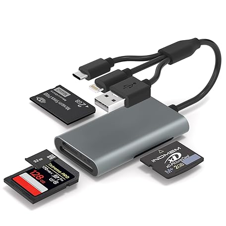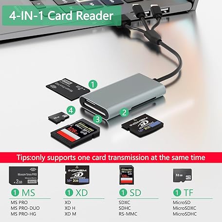 Memory Stick Pro Duo Adapter - 4 in 1 SD/TF/MS/XD Card Reader for iPhone 16/15/14/iPad/PC/Android/MAC, Lightning/USB-C/USB-A Multi Memory Card Reader Digital Camera Adapter for Sony Cybershot SD Card
