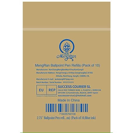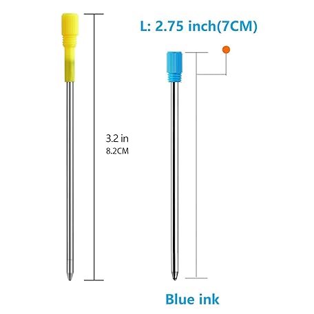 MengRan 2.75'' Ballpoint Pen Refills,Standard D1 Ballpoint Pen Refill (Remove Blue Cap),Compatible with Swarovski Pen Refills (Blue Ink,Pack of 10)