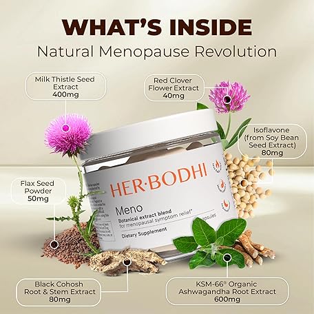 Meno- Menopause Hormonal Balance for Women, Estrogen Soy Isoflavones Menopause Supplement for Women, Holy Basil, Ashwagandha, Black Cohosh Hot Flashes Menopause Relief (60 Capsules)