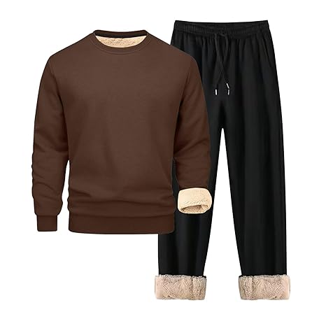 • Mens 2 Piece Tracksuit Sets Winter Warm Casual Sherpa Lined Fleece Sweatshirts Drawstring Jogger Sweatpant Sweatsuits