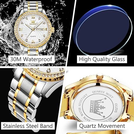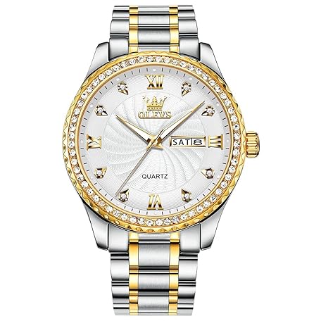 Thương hiệu OLEVS là cái tên nổi tiếng được rất nhiều khách hàng trên thế giới chọn lựa. Với kiểu dáng đẹp mắt, sang trọng, sản phẩm Men's Casual Stainless Steel Watch, Big Face Easy to Read Analog Quartz Watch with Day and Date, Classic Waterproof Diamond Roman Arabic Numerals Dial Dress Watch for Men, Gold Silver Black Band là sự lựa chọn hoàn hảo nếu bạn đang tìm mua một món cho riêng mình.
