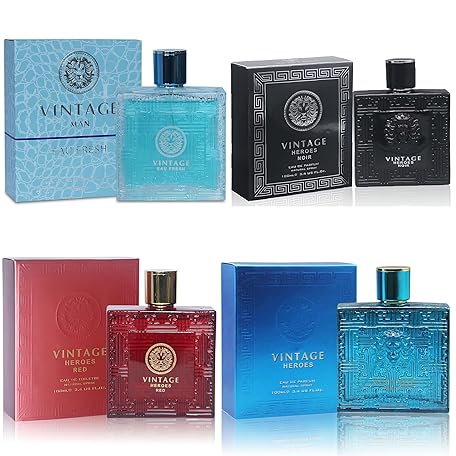 Men's Cologne Gift Set 4 Pack Vintage Heroes Series - 3.4 Fl Oz Each | Vanilla Bourbon, Leather & Amber Floral Fragrance | Luxury Eau de Toilette Quartet