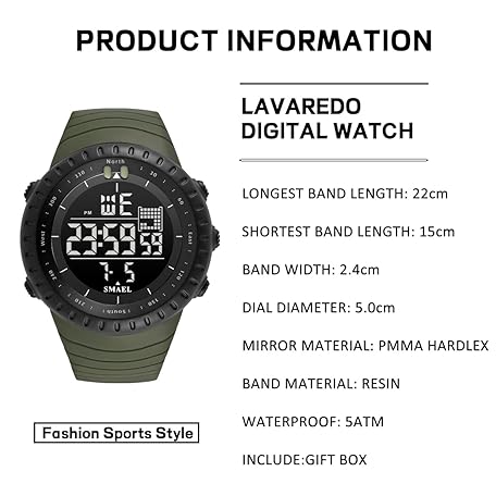 Thương hiệu L LAVAREDO là cái tên nổi tiếng được rất nhiều khách hàng trên thế giới chọn lựa. Với kiểu dáng đẹp mắt, sang trọng, sản phẩm Mens Digital Watch Sports Military Watches Waterproof Outdoor Chronograph Wrist Watches for Men with LED Back Ligh/Alarm/Date là sự lựa chọn hoàn hảo nếu bạn đang tìm mua một món cho riêng mình.