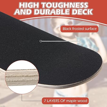 Meooeck Blank Skateboard Decks for Art Painting 32 x 8 Inches, Wood Skateboard Replacement 7 Layer Maple Double Tail Plain Skate Board with Sandpaper for Home Decor