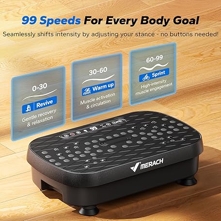 Thông tin sản phẩm MERACH Vibration Plate Exercise Machine for Weight Loss, Dual Massage, 99 Adjustable Speeds, Full Whole Body Workout Vibration Platform, Waver Vibration Plate for Home Fitness (Black)