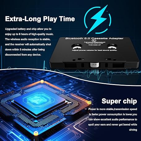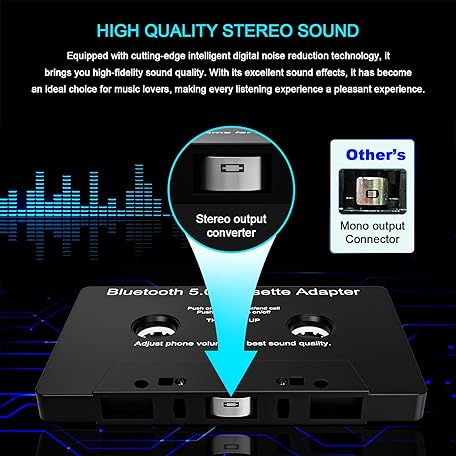 Mersoco Car Audio Bluetooth 5.0 Cassette Receiver,Cassette Bluetooth Adapter for Car Tape Player, Hands-Free Calling, Stereo Two-Channel, Compatibility with Smartphones, Tablets, MP3, Black