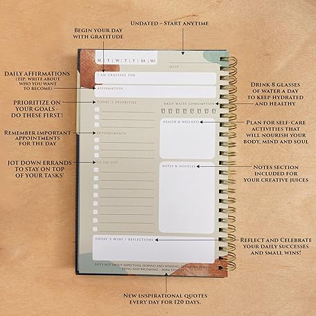 Sản phẩm MESMOS Mindfulness Self Care Daily Calendar with Undated Daily Planner To Do List Notebook đang được bán với giá ưu đãi là $29.3755 tại nước Mỹ.