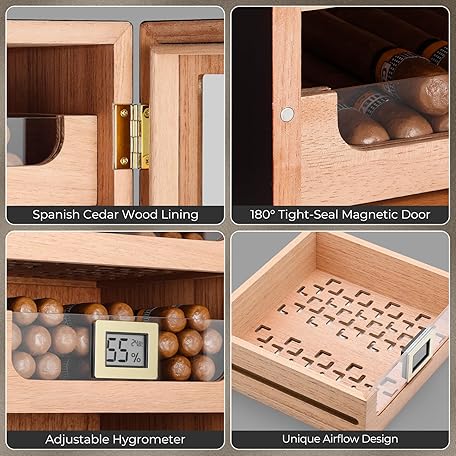 Thông tin sản phẩm MET-1031 Cigar Humidor Cabinet for 150 Cigars – Spanish Cedar Lining, Digital Hygrometer, Magnetic Seal, 3 Drawers + Accessory Storage – Gift for Cigar Aficionados