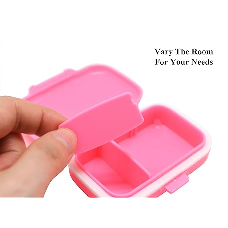 Meta-U Small Pill Box Supplement Case for Pocket or Purse - 3 Removable Compartments Travel Medication Carry Case - Daily Vitamin Organizer Box (Pink)