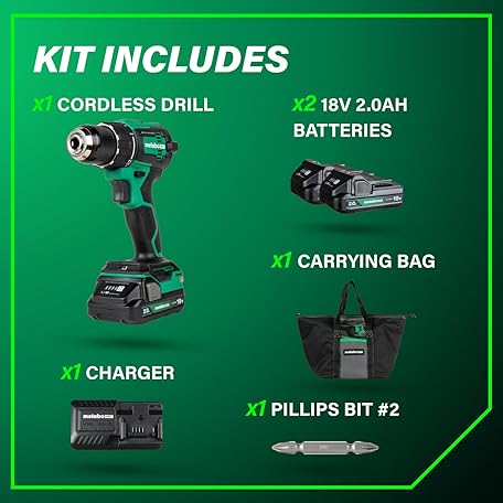 Thông tin sản phẩm Metabo HPT 18V MultiVolt 1/2" Cordless Brushless Driver Drill Kit, High Power Drill Set with Bag, 2 Lithium-Ion Metabo Batteries and Charger, Compact Lightweight Power Driver, DS18DEX