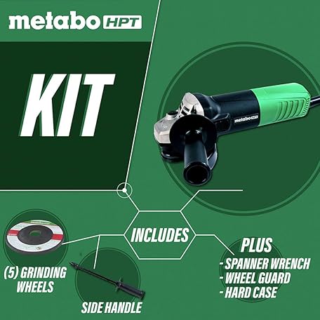 Thông tin sản phẩm Metabo HPT 4-1/2-Inch Angle Grinder, Includes 5 Grinding Wheels & Hard Case, 6.2-Amp Motor, Compact & Lightweight, G12SR4