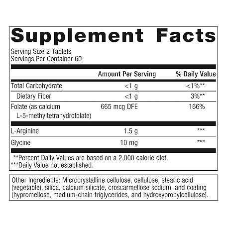 Thông tin sản phẩm Metagenics Arginine Plus - 1.5 g L‑Arginine with Methyl Folate (L‑5‑MTHF) - Supports Healthy Blood Flow, Circulation & Heart Health - Non‑GMO, Gluten‑Free, Vegetarian - 120 Tablets