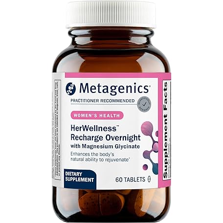 Metagenics HerWellness Recharge Overnight - Women's Sleep Support with Chelated Magnesium, Holy Basil, Zinc & Vitamin C - Supports Relaxation, Stress & Sleep - Non-GMO & Gluten-Free - 60 Tablets