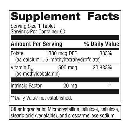 Thông tin sản phẩm Metagenics Intrinsi Vitamin B12-Folate - with Methylcobalamin, L-5-MTHF & Intrinsic Factor - Supports Energy Metabolism, Nervous System & Heart Health - Non-GMO & Gluten-Free - 60 Tablets