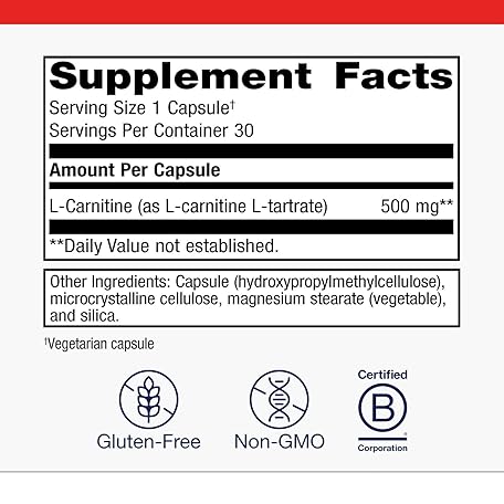 Thông tin sản phẩm Metagenics L-Carnitine - Amino Acid Supplement for Fat Metabolism & Energy Support* - 500 mg L-Carnitine L-Tartrate - Non-GMO, Gluten-Free, Vegetarian - 30 Capsules