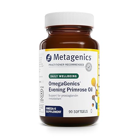 Thông tin sản phẩm Metagenics OmegaGenics Evening Primrose Oil - 419 mg Omega-6 with 50 mg GLA - Supports Skin, Hormonal, PMS, Menopause & Immune Health* - Non-GMO, Gluten-Free - GMP Certified Facility - 90 Softgels