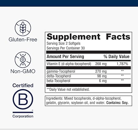 Thông tin sản phẩm Metagenics Vitamin E Mixed Tocopherols - High Potency Antioxidant Supplement with Alpha & Gamma Tocopherols - Supports Heart, Immune & Cellular Health - Non-GMO, Gluten-Free - 60 Softgels