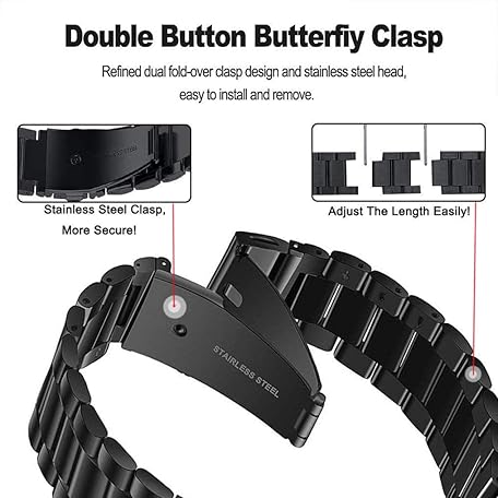 Thông tin sản phẩm Metal Bands for Garmin Vivoactive 4/Venu 3/Venu 2 45mm/Forerunner 570(47mm)/255/265/945 Watch Bands, 22mm Metal band Strap for Amazfit GTR 4,GTR 3,GTR 2,2e,Ticwatch Pro 3,Fossil Gen 5 for Women and Men Black