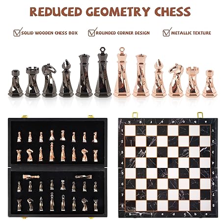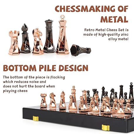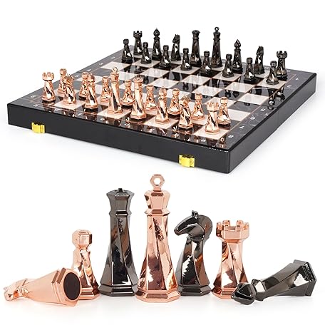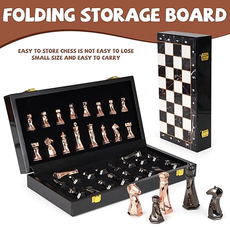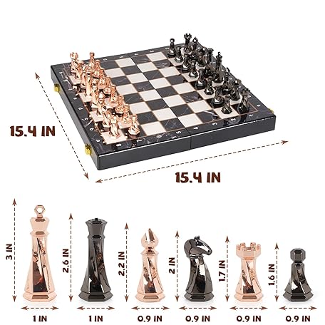 Metal Chess Set for Adults and Kids – 15" Wooden Chess Board with Modern Metal Chess Pieces Travel Chess Sets with Metal Chessmen – Collectible Elegant Chess Game – Family Vintage Board Game