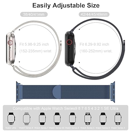 Sản phẩm Metal Magnetic Apple Watch Band Compatible with 38mm 40mm 41mm 42mm 44mm 45mm 46mm 49mm, Stainless Steel Mesh Loop Strap iWatch Bands for Series 11/10/9/8/SE/7/6/5/4/3/2/1/Ultra Women Men đang được bán với giá ưu đãi là $7.8262 tại nước Mỹ.