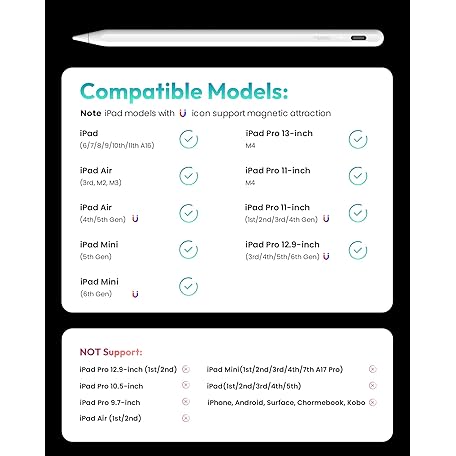 Thông tin sản phẩm Metapen Pencil A8 for Apple iPad 2018-2025, (2X Faster Charge), Tilt Sensitivity, Pixel Precision, Stylus Pen for iPad 11/10/9/8/7/6th Gen, Pro 12.9/11/13-inch M4, Air 3/4/5/M2/M3, Mini 5/6th, White